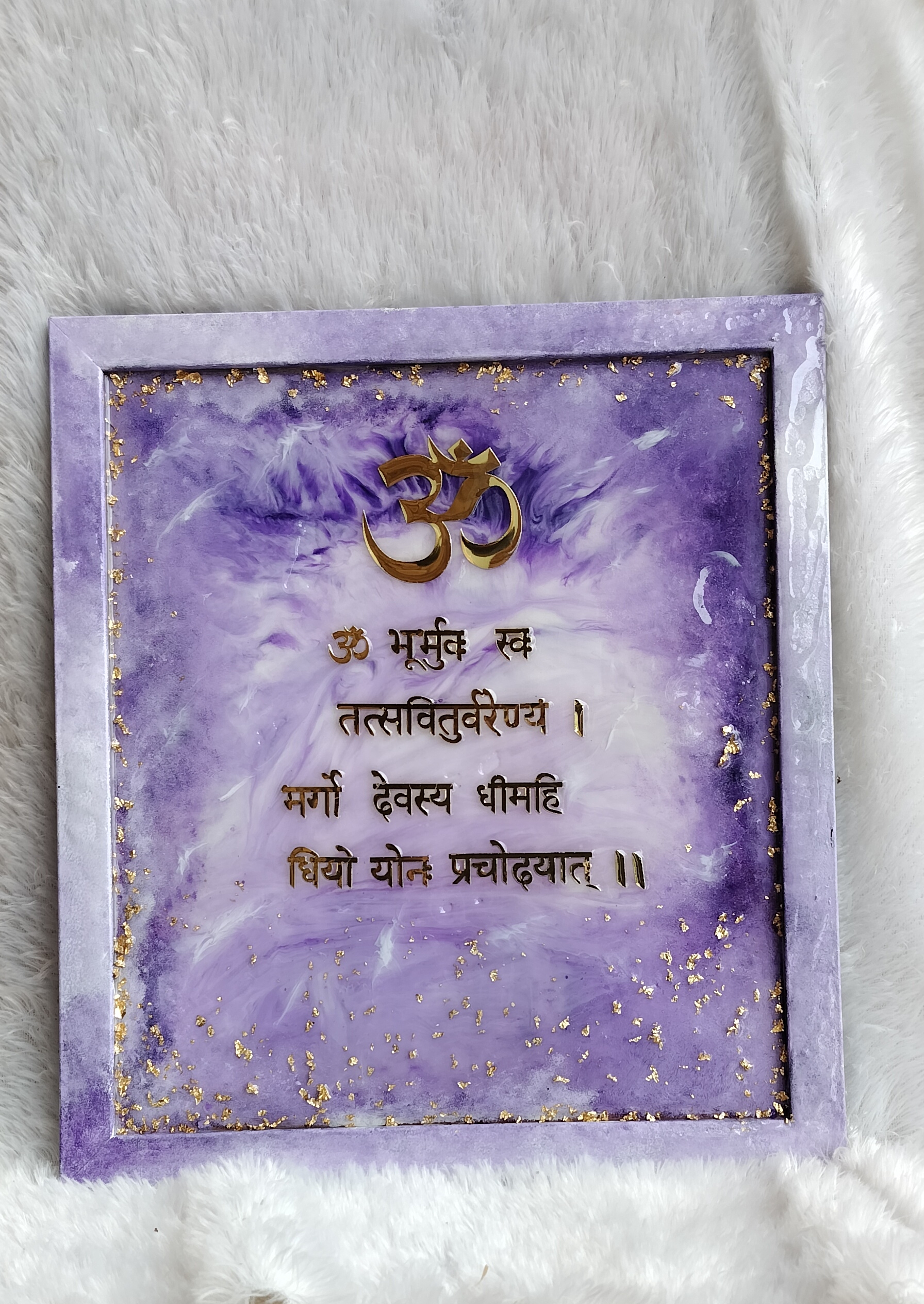 The Gayatri Mantra is a revered and powerful Vedic chant that holds significant spiritual importance in Hinduism. It’s often used for meditation, prayer, and spiritual growth. Placing a framed depiction of the Gayatri Mantra in your home can serve several purposes: